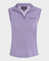 - Emporio Armani pique polo - Spread collar - Sleeveless - Chest patch pocket - Relaxed fit - Pullover style - Viscose/polyester/elastane - Dry clean - Imported