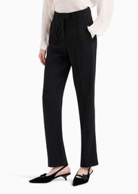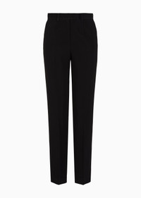 Linear-fit trousers made from stretch viscose. The pleats at the waist accentuate the streamlined fit of the leg, and combined with the fluidity of the fabric, give the piece a graceful, elegant allure. Product Code: 6D2P692NA9Z10999 Details Composition 99% Viscose 1% Elastane Stretch viscose Waist with pleats Closure with hook and back button Side pockets Back pocket with double welt and button Fitting The model is 178 cm tall and is wearing size 40/S (Italian Size)