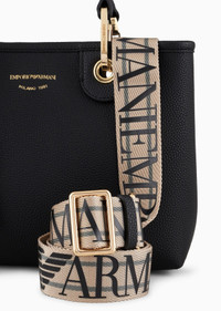 Deer-print small shopper bag with magnetic clasp and silk-screen logo. The item is embellished with removable gold-tone carabiner clips and tags with embossed logo lettering that match the bag. Featuring a matching inner zip pouch and detachable logo shoulder strap. This item belongs to the MyEA line, the selection of iconic and exclusive Emporio Armani bags that are most representative of the label. Choose the piece and complete it with accessories from the line that suits your style. The bag is also part of the Essentials selection, making it a statement of enduring style: both elegant and practical, it works in numerous combinations on a wide array of occasions. Product Code: Y3D166YFO5B185218 Details Composition 100% Polyurethane Measurements: 26 x 20 x 10 cm Deer-print finish Solid coloured Silkscreen logo Two handles Logo clips Detachable logo shoulder strap Matching internal pouch with zip