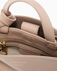 Mini bag made of luxury smooth leather. An iconic new line that embodies the essential nature and clean lines typical of the Armani aesthetic, while remaining perfectly in tune with current trends. Designed for everyday use, it stands out for its exceptional functionality: multiple internal pockets and a sculpted handle make it practical and comfortable to carry. Its distinctive feature is a new logo design: an all-over pattern of three-dimensional eagles with an antique finish, offering a sophisticated reinterpretation of the brand’s iconic symbol. Measurements: 23 x 22.5 x 6 cm Leather Smooth finish Zip closure Single handle Silkscreen logo Product Code: EW003830AF22783U6076
