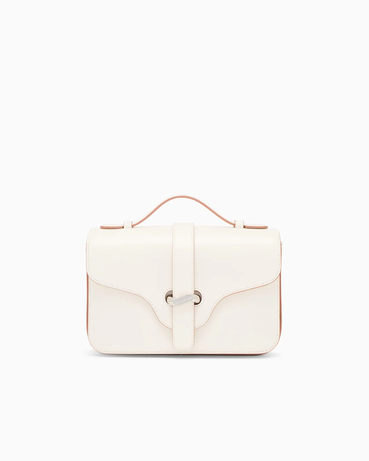 Shoulder bag made of smooth leather. An essential and refined accessory, perfect for completing any look with a touch of elegance. A new selection defined by two key elements: the distinctive shape of the flap and a metal accessory that echoes the movement of the chain links. Measurements: 15 x 22.5 x 5 cm Leather Smooth finish Adjustable shoulder strap Closure flap Product Code: EW004419AF25356U1070