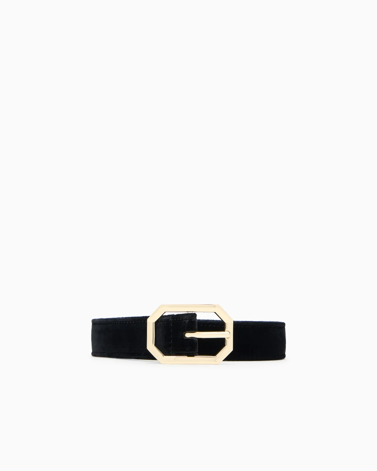 Elegant smooth velvet belt with central geometric buckle. Width: 3 cm Smooth velvet Made in Italy Product Code: EW002021AF17289UC001