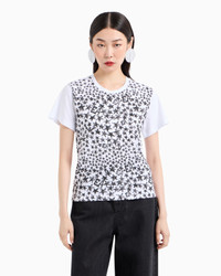 Round-neck jersey T-shirt made from organic cotton jersey, a fabric made from natural fibres from organic agriculture. The style is customised with a dense water-based print with all-over stars and EA logo on the front. Product Code: 6D2T7L2JIDZ10100 Details Composition 100% Cotton The fabric is made of 100% organic cotton Jersey Crew neck Short sleeves Decorative print Fitting The model is 178 cm tall and is wearing size 40/S (Italian Size)