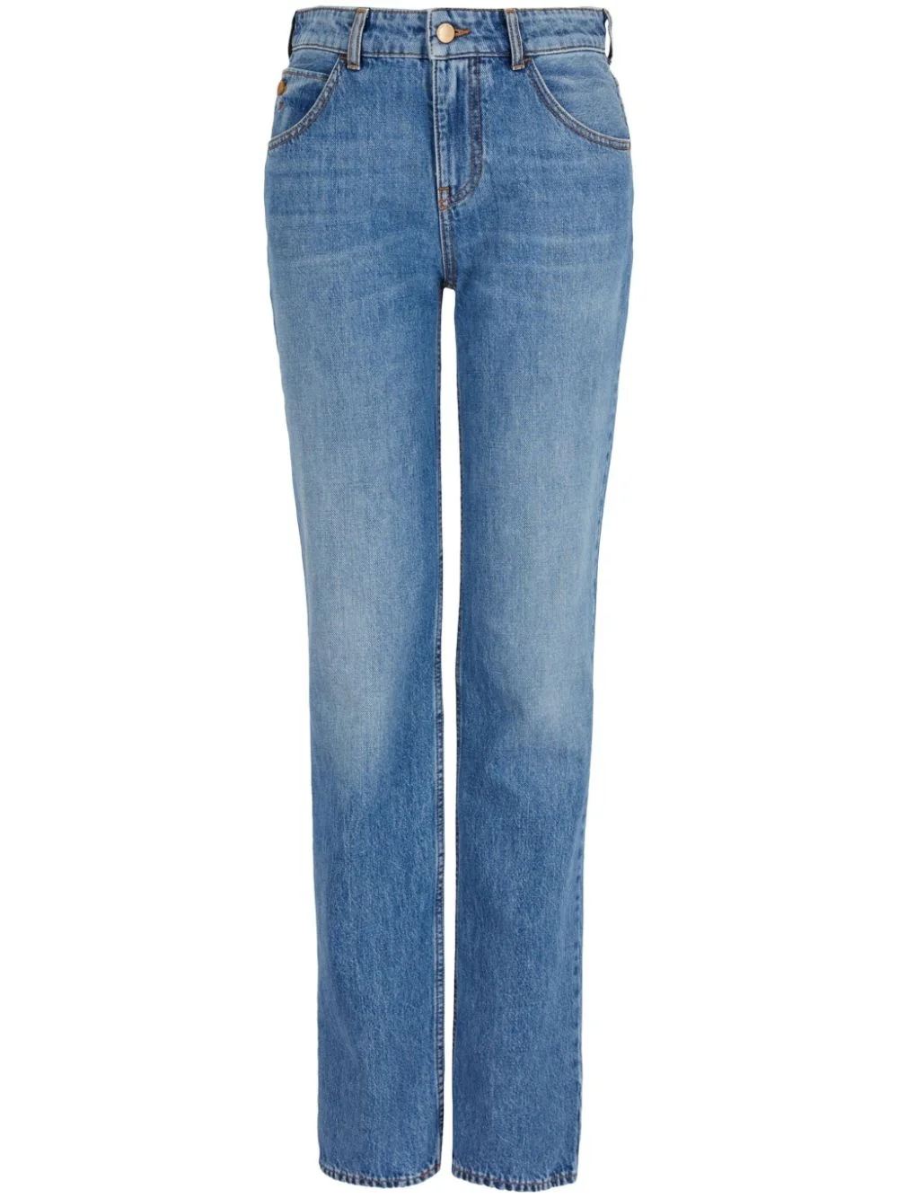 straight-leg jeans Highlights - Indigo blue - Cotton - Denim - Mid-wash - Logo patch to the rear - Embroidered logo to the rear - Contrast stitching - Belt loops - Concealed fly and button fastening - Classic five pockets - Straight leg Imported Composition Cotton 100%