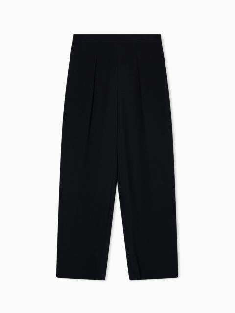 Palazzo trousers with pleats at the waist. A fluid style that flows with every step, made of stretch sandblasted fabric, a draped, sensual fabric that creates a piece designed to be worn day&night. Sandblasted fabric Pleats Elasticated waist at the back Product Code: EW001964AF15990UC001