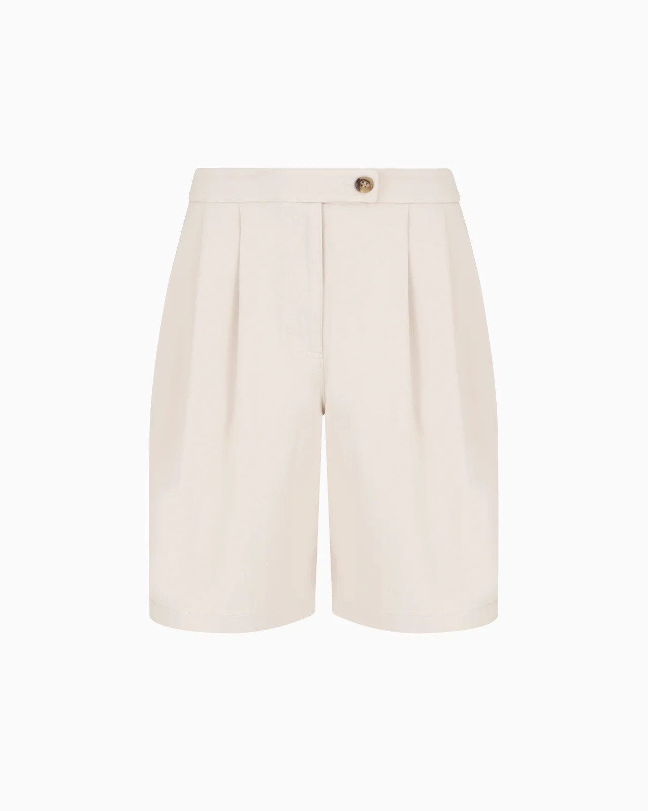 Shorts with front tucks that create deep vertical pleats. A comfortable design made from stretch cotton gabardine. Product Code: 6D2P742NB1Z10132 Details Composition 98% Cotton 2% Elastane Stretch gabardine Closure with zip, button and back button Side pockets Back patch pocket Fitting The model is 178 cm tall and is wearing size 40/S (Italian Size)