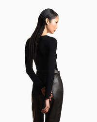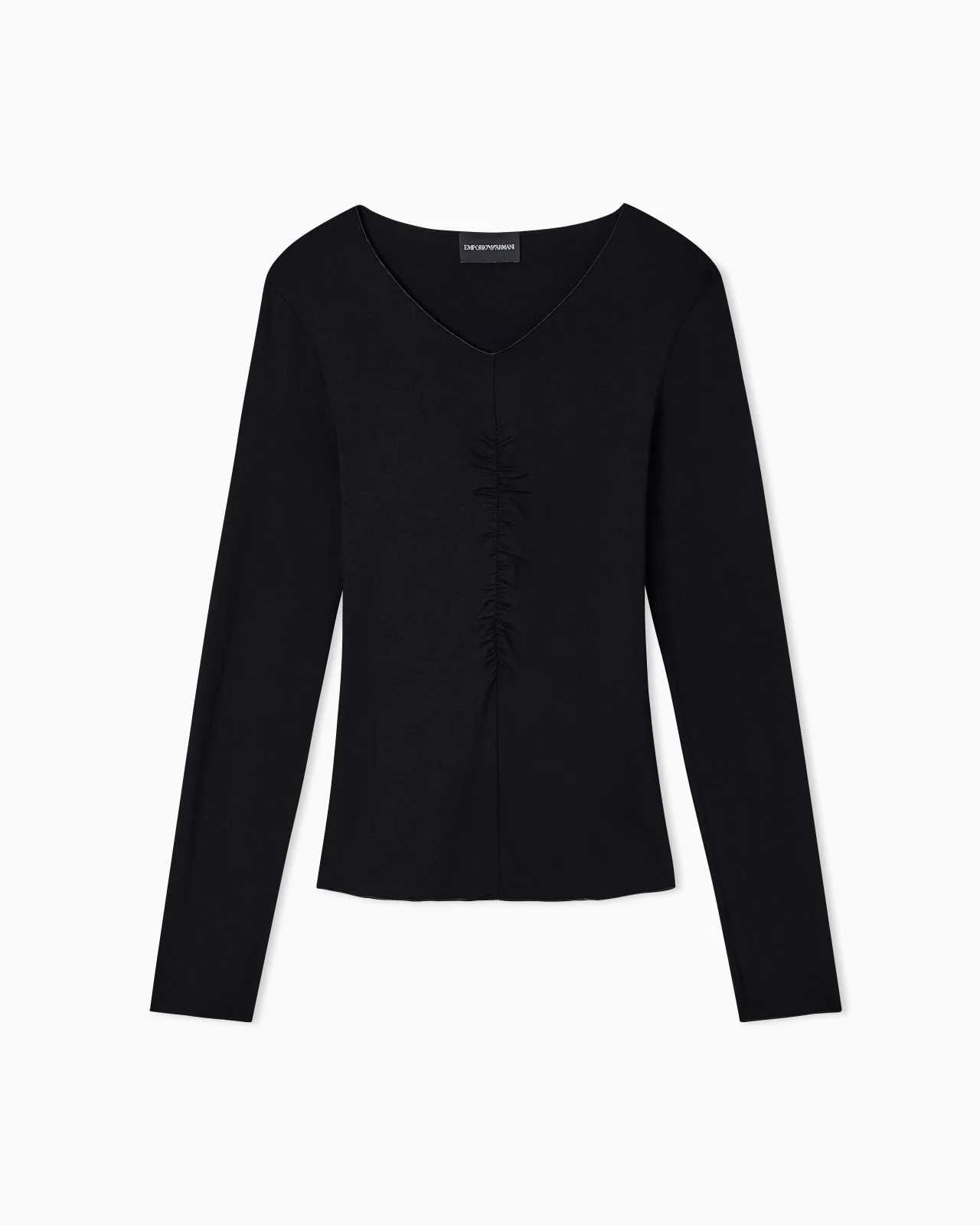 Stretch-jersey jumper with a V neck. A style embellished with a front gathering detail that adds movement. A versatile piece that adapts to multiple looks. Stretch jersey V neck Gathered detail Long sleeves Product Code: EW003526AF12328UC001