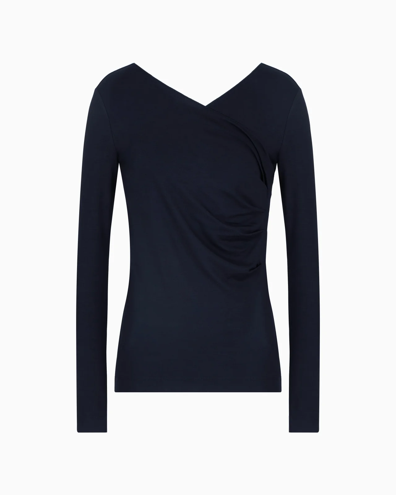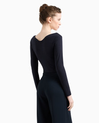 Jumper with cross-over V neck and front gathering detail, made of viscose stretch jersey fabric with a particularly fluid knit. A versatile style for morning and evening wear. Stretch jersey V neck Gathering Long sleeves Back V neck Product Code: EW000673AF12328UB081