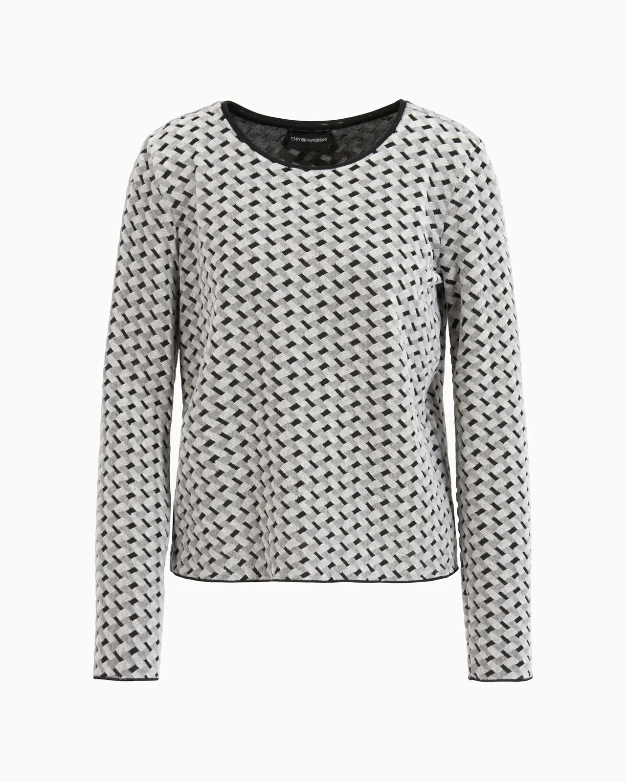 Round-neck jumper with a cotton-jersey base covered in an embossed devore pattern with a chenille-feel finish: a decorative motif that creates an all-over mesh-effect pattern. Product Code: 6D2M8E2JYAZ1F608 Details Composition 63% Cotton 37% Polyester Jersey Devore effect Chenille feel Rounded neckline Long sleeves Fitting The model is 178 cm tall and is wearing size 40/S (Italian Size)