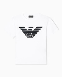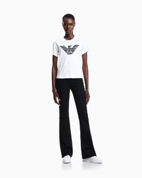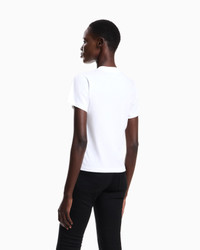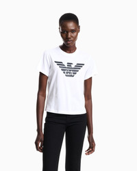 This crew-neck T-shirt made of organic cotton jersey is created using methods and materials that have a low impact on the environment, in line with the brand’s desire for an increasingly sustainable approach. The Emporio Armani logo print centred in the design is a constant of undeniable style. The piece belongs to the Essentials selection, the Emporio Armani capsule collection that makes a statement of enduring style: both elegant and practical, it works for numerous combinations on a wide array of occasions. The colour palette includes the brand’s characteristic neutral shades, combined with a minimalist design to create a series of key pieces for the female wardrobe. Product Code: 8N2T9C2J53Z1F108 Details Composition 100% Cotton Organic cotton Crew neck Short sleeves Logo print Fitting The model is 178 cm tall and is wearing size 40/S (Italian Size)