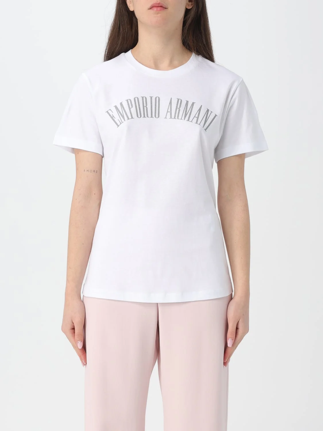 DESCRIPTION - Style: Basic, Casual - Logo: Contrasting - Neckline: Crewneck - Shoulders: Regular - Sleeves: Short - Bottom: With straight hemline - Materials: Cotton DETAILS AND CARE Composition COTTON 100% SIZE AND FIT Sizes not available Size and fit Regular fit Designer code: 3D2T7S2JIDZ 0100 Giglio Code: 402167 Designer: Emporio Armani Collection: Emporio Armani Woman Category: Clothing Emporio Armani