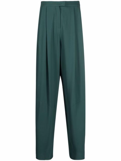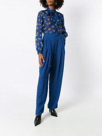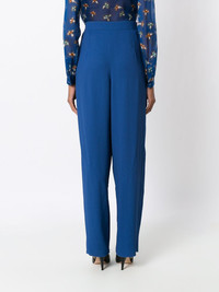 tapered-leg trousers Highlights - Blue - Viscose - Off-centre front button fastening - Two side slit pockets - Tapered leg Imported Composition Viscose 54%, Acetate 46% SIZE & FIT Model measurements Height 5 ft 10 in(1.78 m) Bust/Chest 31.1 in(79 cm) Hips 34.64 in(88 cm) Waist 25.98 in(66 cm) FittingInformation This piece fits true to size. We recommend you get your regular size Designed to be fitted at the waist and hips, loose over the leg Made with a mid-weight non-stretch fabric Measurement BACK RISE 18.11 in(46 cm) FRONT RISE 15.74 in(40 cm) Hem Width 9.44 in(24 cm) HIPS 37.79 in(96 cm) INSIDE LEG 32.28 in(82 cm) WAIST 27.55 in(70 cm)