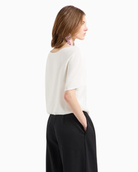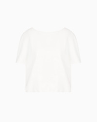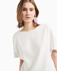 Technical cady blouse with a rounded neckline in a flowing, lightweight fabric that gently drapes across the body, offering an impeccable look to any silhouette. The style features wide sleeves with a cape-effect design and has a side press-stud opening at the gathered hem, creating a balloon effect. Tech cady Rounded neckline Short sleeves Side press studs at the hem Gathered hem Lined garment Product Code: EW000828AF10206U0006