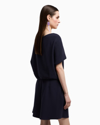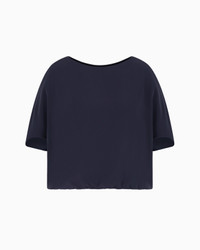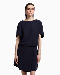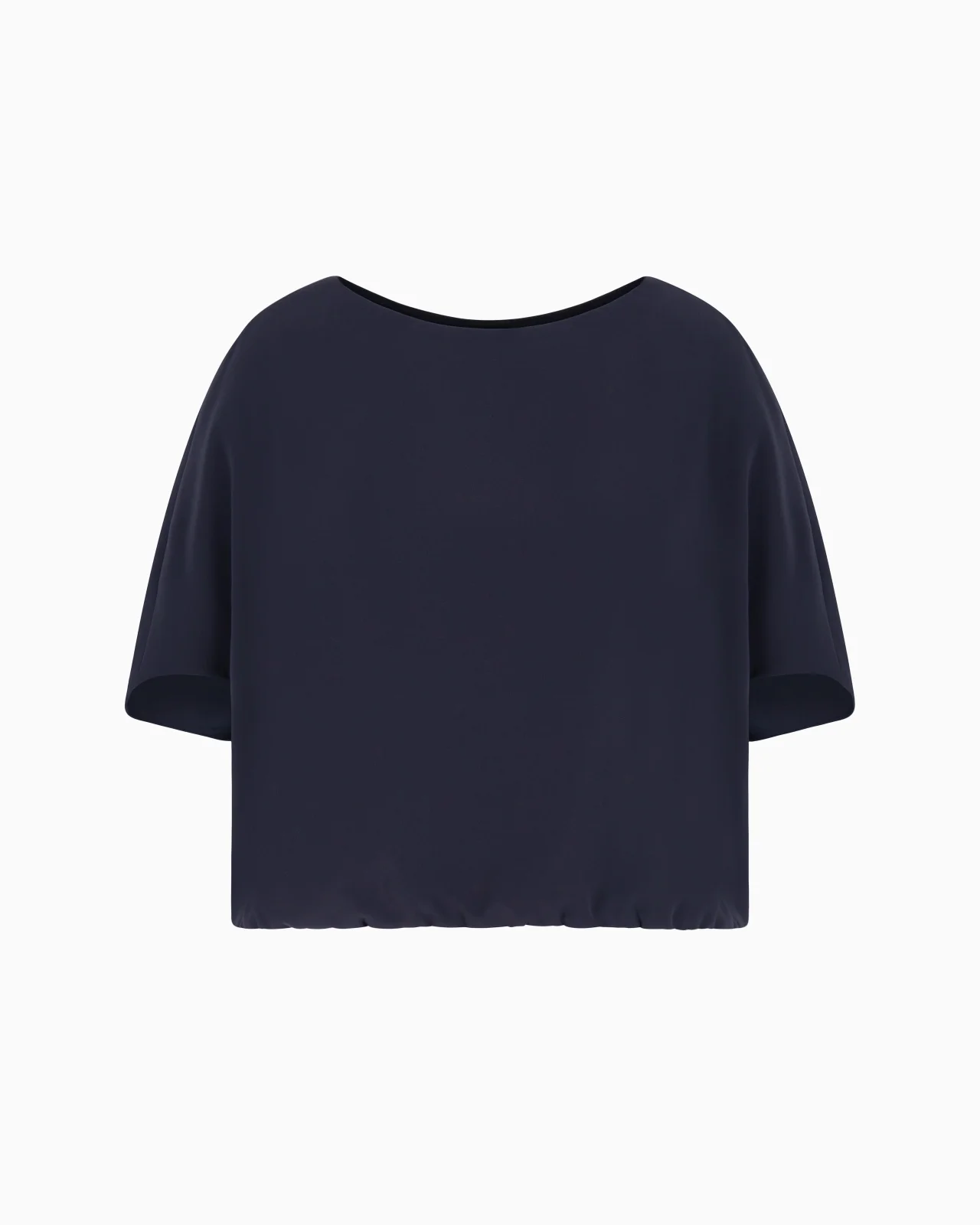 Technical cady blouse with a rounded neckline in a flowing, lightweight fabric that gently drapes across the body, offering an impeccable look to any silhouette. The style features wide sleeves with a cape-effect design and has a side press-stud opening at the gathered hem, creating a balloon effect. Tech cady Rounded neckline Short sleeves Side press studs at the hem Gathered hem Lined garment Product Code: EW000828AF10206UB115
