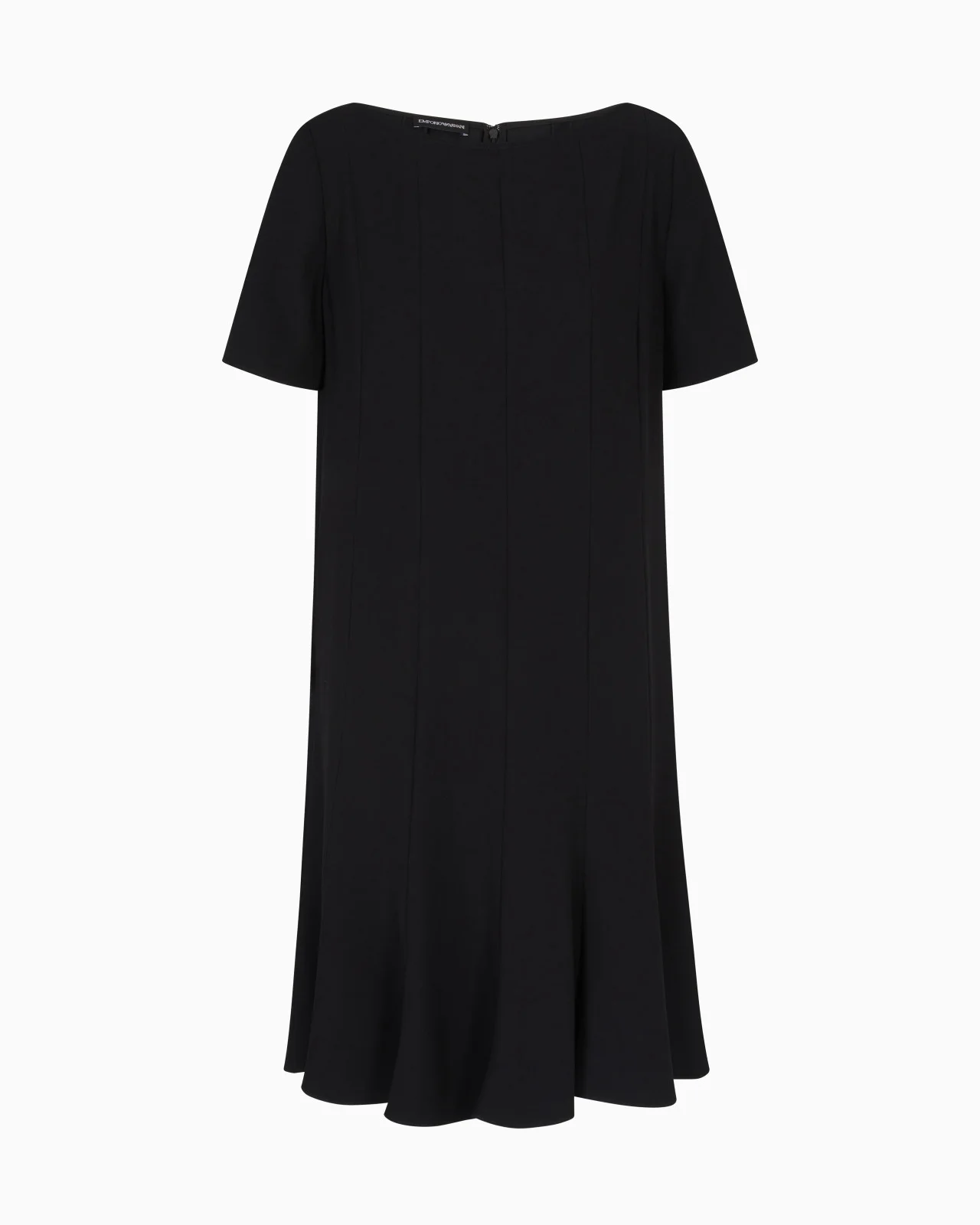 Dress with a rounded neckline, made from flowing, lightweight technical cady that gently drapes across the body, offering an impeccable look to any silhouette. The flared design is accentuated by the fixed and stitched pleats on both the front and back creating a ruffled effect at the hem. Express your femininity in this dress that can be worn on a wide array of occasions. Technical cady Rounded neckline Short sleeves Fixed pleats Back zip and hook closure Unlined garment Product Code: EW001719AF10206UC001