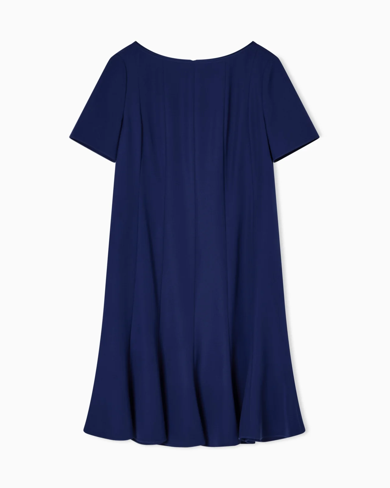 Dress with a rounded neckline, made from flowing, lightweight technical cady that gently drapes across the body, offering an impeccable look to any silhouette. The flared design is accentuated by the fixed and stitched pleats on both the front and back creating a ruffled effect at the hem. Express your femininity in this dress that can be worn on a wide array of occasions. Technical cady Rounded neckline Short sleeves Fixed pleats Back zip and hook closure Unlined garment Product Code: EW001719AF10206UB105