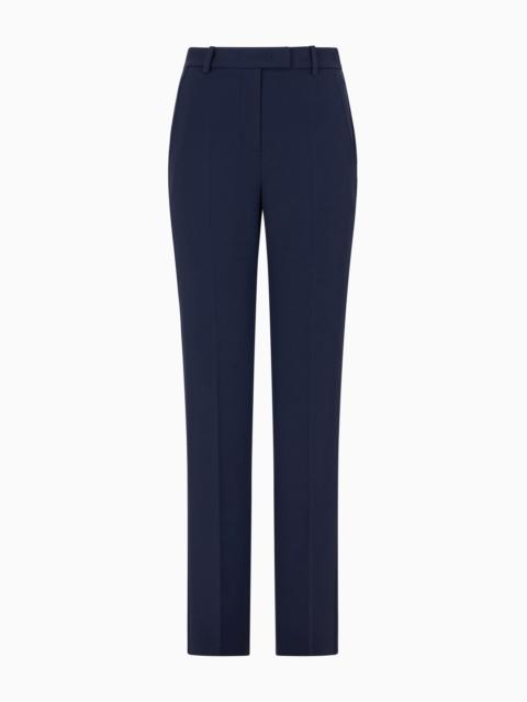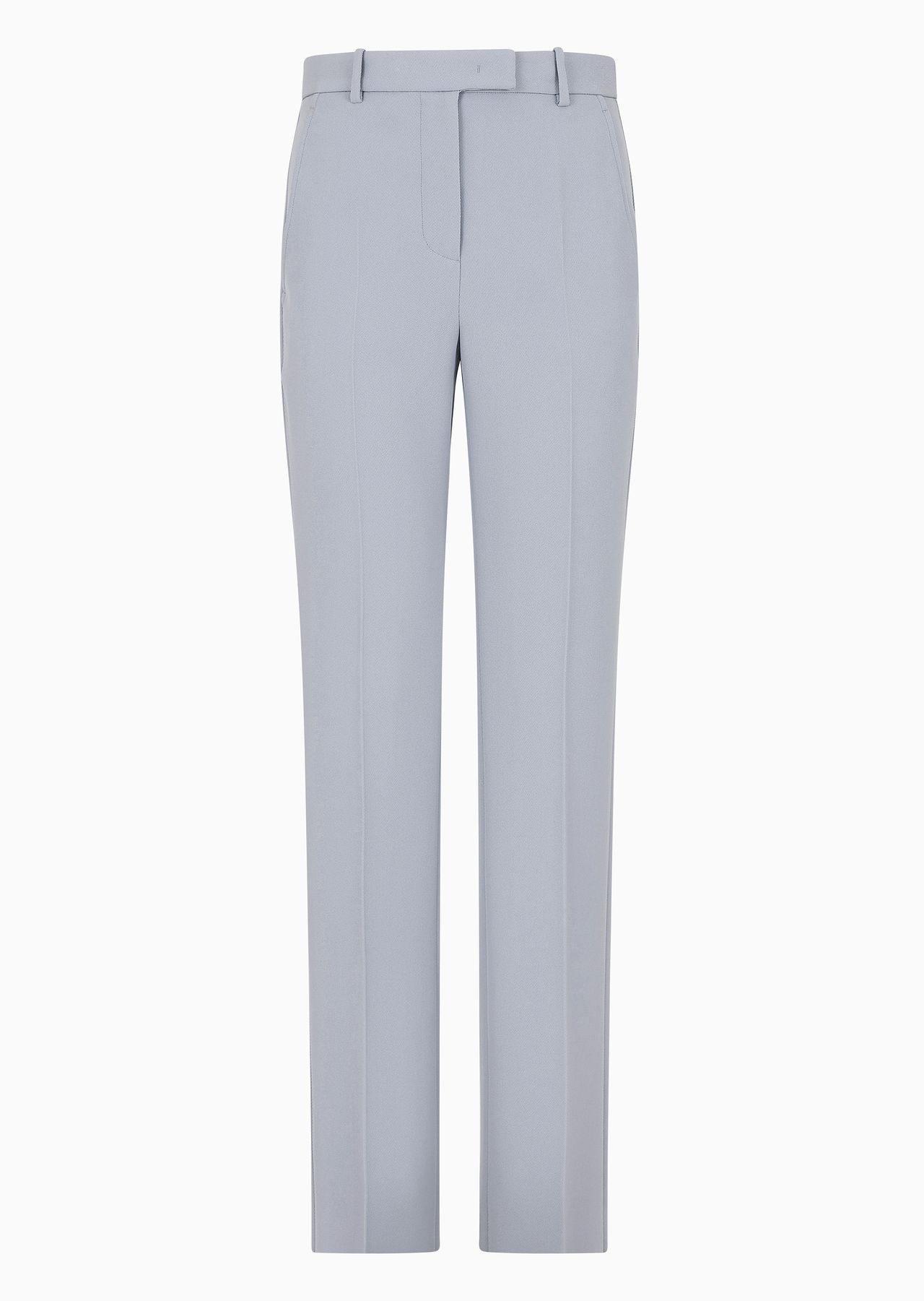 Trousers with belt loops at the waist and off-centre fastening. Made of technical gabardine, they lend themselves to multiple combinations, either with daywear, tops or outerwear with an evening allure. Product Code: EW000263AF102341U8061 Details Composition 100% Polyester Technical gabardine Waist with belt loops Off-centre closure with zip, button and back button Side pockets Back double-welt pocket Unlined garment Fitting The model is 178 cm tall and is wearing size 40/S (Italian Size)