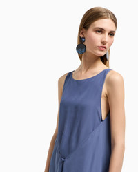 Long dress made of technical georgette. Thanks to the natural lightness of the fabric, the piece acquires femininity and airiness, while the fabric’s natural sheerness enhances the refined sensuality of the style. The style features a front panel closed with a button that adds movement and originality to the piece. Technical georgette Rounded neckline Sleeveless Front panel with button Back zip closure Product Code: EW000843AF10209UB084