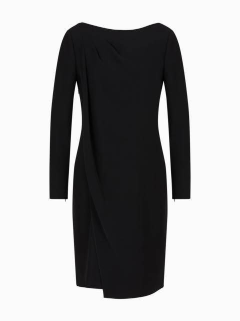 Round-neck dress with a distinctive front panel construction embellished with pleats on the shoulder. Made of flowing, lightweight techno cady that gently brushes against the skin to ensure a flawless look on any silhouette. A feminine design with fluid textures for a dress that takes you from morning to night with a nonchalant, understated elegance that flows naturally over the silhouette. Length: 80 cm Tech cady Rounded neckline Long sleeves Cuffs with invisible zips Concealed side zip Partially lined Product Code: EW000829AF10206UB115