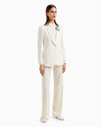 Palazzo trousers made from technical cady, a flowing, lightweight fabric that gently drapes across the body, offering an impeccable look to any silhouette. These trousers are perfect from mornings in the office until drinks in the evening, providing a distinctive elegance to any occasion. The piece belongs to the Essentials selection, the Emporio Armani capsule collection that makes a statement of enduring style: both elegant and practical, it works for numerous combinations on a wide array of occasions. The colour palette includes the brand’s characteristic neutral shades, combined with a minimalist design to create a series of key pieces for the female wardrobe. Product Code: 8N2P052NWAZ10101 Details Composition 100% Polyester Tech cady Palazzo cut High waisted Concealed side zip Fitting The model is 178 cm tall and is wearing size 40/S (Italian Size)