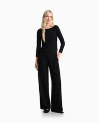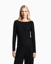 Stretch-jersey jumper with a boat neck. A linear design enhanced by a monochromatic jacquard geometric pattern. Jersey Jacquard Geometric pattern Boat neck Long sleeves Product Code: EW001993AF16062UC001