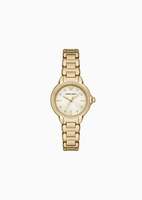 This 32mm watch features a cream sunray dial, three-hand movement and gold-tone stainless steel bracelet. Product Code: AR11609_NLP1_NLC Details Composition 100% Stainless Steel Movement: Quartz/3 Hand Dial: Cream Case Size: 32mm Case Material: Stainless Steel Plating: Gold Bracelet: Gold Stainless Steel Atm: 5 Atm
