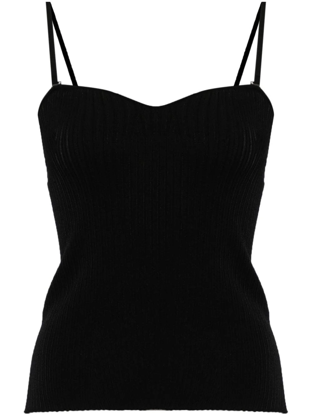 sweetheart-neck ribbed tank top Highlights - Black - Stretch-design - Fine ribbed - Sweetheart neck - Adjustable spaghetti straps - Sleeveless - Straight hem Imported Composition Viscose 80%, Polyester 12%, Polyamide 7%, Elastane 1% SIZE & FIT Model measurements Height 5 ft 9 in(1.76 m) Bust/Chest 29.13 in(74 cm) Hips 33.07 in(84 cm) Waist 22.83 in(58 cm) FittingInformation Designed for a slim fit that sits just away from the body offering a close yet comfortable fit The adjustable shoulder straps allow for a preferred fit when worn Made with a midweight knit, this piece offers some stretch This piece fits true to size – take your usual size