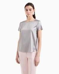 Women’s short-sleeved blouse made of exquisite silk satin with a natural sheen that adds charm to even the most basic outfits. Rounded neckline with arched back button closure. The piece belongs to the Essentials selection, the Emporio Armani capsule collection that makes a statement of enduring style: both elegant and practical, it works for numerous combinations on a wide array of occasions. The colour palette includes the brand’s characteristic neutral shades, combined with a minimalist design to create a series of key pieces for the female wardrobe. Product Code: 8N2K152NXXZ1115 Details Composition 94% Silk 6% Elastane Silk satin Rounded neckline Short sleeves Back pointed closure with button Fitting The model is 178 cm tall and is wearing size 40/S (Italian Size)