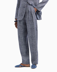 Straight-leg menswear style trousers made from a crisp, soft linen and viscose blend fabric. The style with front darts and pleats has a classic Prince of Wales check pattern, making it perfect for formal daywear. Linen and viscose blend Prince of Wales check motif Off-centre closure with zip and button Ottoman-lined waist Front pleats and darts Serge-lined side pockets Back welt pocket Product Code: EW001419TE13547FB114
