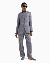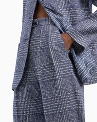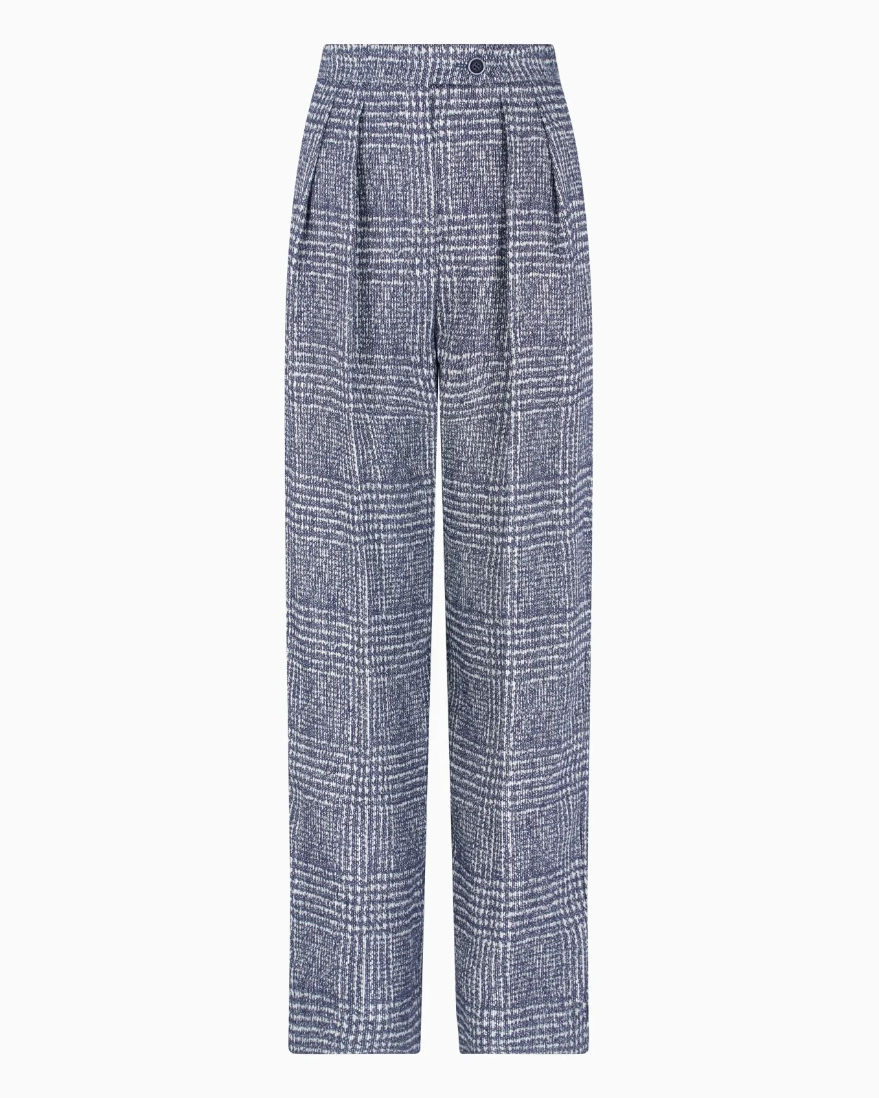 TROUSERS WITH PLEATS IN A PRINCE OF WALES CHECK LINEN AND VISCOSE BLEND