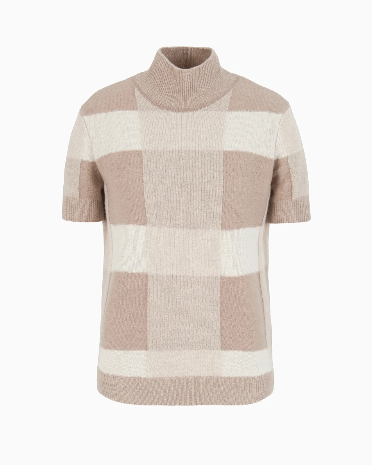 Icon short-sleeved virgin wool mock-neck jumper with a plated check motif