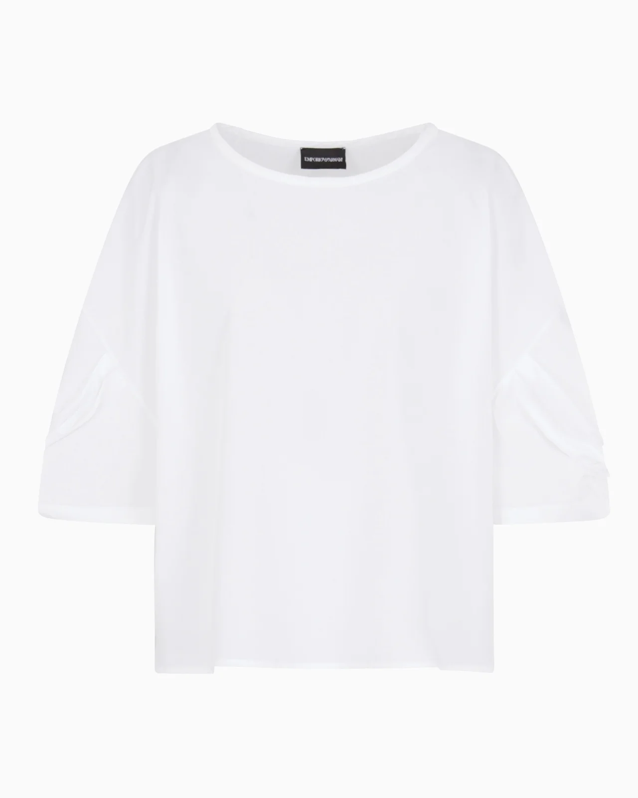 Round-neck blouse made from crisp, pure cotton poplin that adds a summery touch to any look. The boxy fit style features wide three-quarter length sleeves with a twisted balloon effect that enhance the femininity of the piece. Poplin Rounded neckline Wide twisted sleeves Side slits Product Code: EW000771AF10010U0002