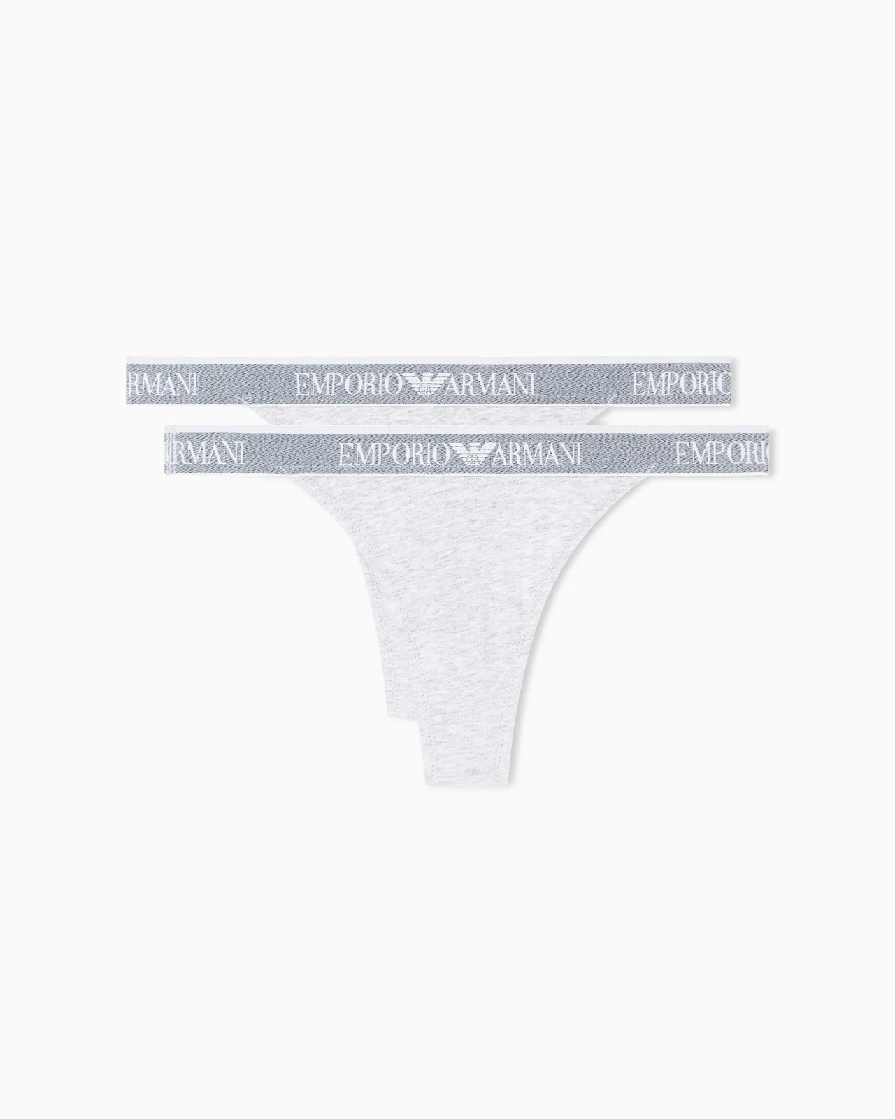 Pack containing two thongs with an elasticated logo waistband. The fabric is an organic cotton made from organically grown fibres. Fabric: 95% organically grown cotton Two-pack Elasticated waist with logo Product Code: EW000405AF15345M8194