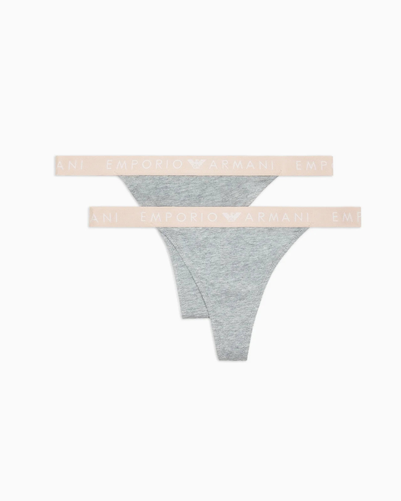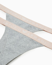 Pack containing two thongs with elasticated logo waistband. Fabric in certified organic cotton made from organically farmed natural fibres grown using techniques that meet strict social and environmental criteria. Product Code: 1645224F227100948 Details Composition 95% Cotton 5% Elastane The fabric is made of 95% organic cotton Two-pack Elasticated waist with logo Fitting The model is 178 cm tall and is wearing size 40/S (Italian Size)