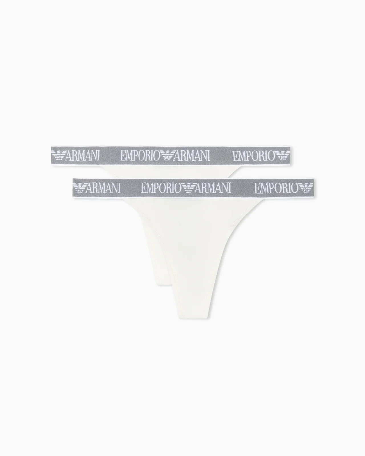 Pack containing two thongs with an elasticated logo waistband. Organic cotton jersey made from organically grown fibres. Fabric: 95% organically grown cotton Two-pack Jersey Elasticated waist with logo Product Code: EW000405AF19026M0082