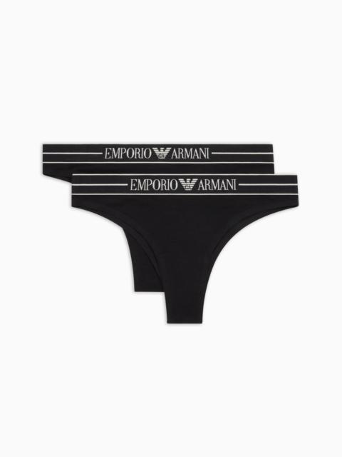Two-pack of Brazilian briefs with an elasticated logo waistband. The fabric is an organic cotton made from organically grown fibres. Fabric: 95% organically grown cotton Two-pack Elasticated waist with logo Product Code: EW000406AF10881MC043