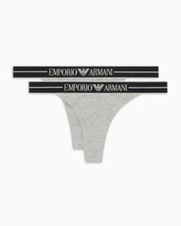 Pack containing two thongs with elasticated logo waistband. Fabric in certified organic cotton made from organically farmed natural fibres grown using techniques that meet strict social and environmental criteria. Two-pack Elasticated waist with logo Product Code: EW000405AF10881M8095