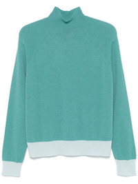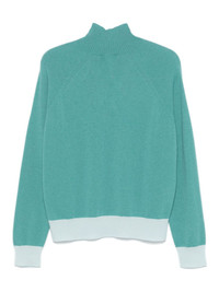 two-tone sweater Highlights - Turquoise blue-green/powder blue - Virgin wool-cashmere blend - Fine knit - Two-tone design - Roll neck - Long raglan sleeves - Contrasting border - Straight hem Made in Italy Composition Virgin Wool 70%, Cashmere 30% SIZE & FIT FittingInformation Designed for a relaxed fit, this piece allows for comfort and movement when worn Made with a midweight knit, this piece offers some stretch Washing instructions Hand Wash