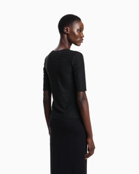 Women's two-way stretch nylon jersey jumper with three-quarter length sleeves with a jacquard texture with an embossed motif. The piece belongs to the Essentials selection, the Emporio Armani capsule collection that makes a statement of enduring style: both elegant and practical, it works for numerous combinations on a wide array of occasions. The colour palette includes the brand’s characteristic neutral shades, combined with a minimalist design to create a series of key pieces for the female wardrobe. Product Code: 8N2M9A2JHFZ1F020 Details Composition 95% Polyamide 5% Elastane Two-way stretch jersey Jacquard motif V neck Three-quarter sleeves Fitting The model is 178 cm tall and is wearing size 40/S (Italian Size)