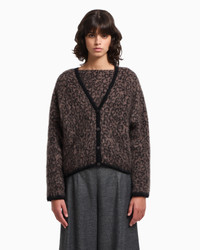 V-NECK CARDIGAN IN JACQUARD WOOL-MOHAIR BLEND WITH AN ALL-OVER PATTERN