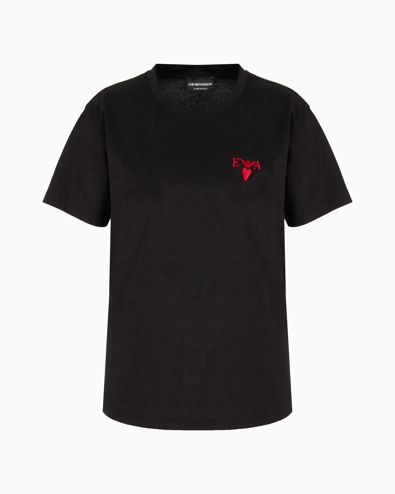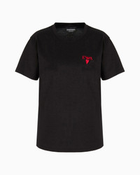 Crew-neck T-shirt made from high-quality mercerised cotton for added sheen, durability and breathability. Collection embroidery on the chest. A tribute to the day of love and lovers: the contrasting red graphic designs embellish ready-to-wear clothing and accessories from the Valentine’s Day capsule collection, the Emporio Armani collection that celebrates love. Product Code: EW000202AF100031UC001 Details Composition 100% Cotton Mercerised jersey Crew neck Short sleeves Collection embroidery Fitting The model is 178 cm tall and is wearing size 40/S (Italian Size)