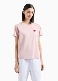 Crew-neck T-shirt made from high-quality mercerised cotton for added sheen, durability and breathability. Collection embroidery on the chest. A tribute to the day of love and lovers: the contrasting red graphic designs embellish ready-to-wear clothing and accessories from the Valentine’s Day capsule collection, the Emporio Armani collection that celebrates love. Product Code: EW000202AF100031U4218 Details Composition 100% Cotton Mercerised jersey Crew neck Short sleeves Collection embroidery Fitting The model is 178 cm tall and is wearing size 40/S (Italian Size)