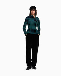 VELVET JACKET WITH EMBROIDERED CHECK MOTIF