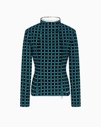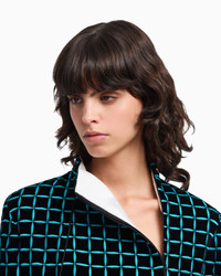 Velvet jacket with a mock neck and off-centre zip fastening. A versatile and elegant style, embellished with an all-over embroidered check motif. Velvet Embroidered check motif Mock neck Off-centre closure with zip Long sleeves Satin lining Product Code: EW002656TE16688FC229