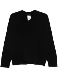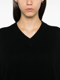 virgin wool V-neck sweater Highlights - Black - Virgin wool-cashmere blend - Fine knit - Ribbed trim - V-neck - Drop shoulder - Long sleeves - Straight hem Made in Italy Composition Virgin Wool 90%, Cashmere 10% SIZE & FIT Model measurements Height 5 ft 10 in(1.78 m) Bust/Chest 33.85 in(86 cm) Hips 36.61 in(93 cm) Waist 26.77 in(68 cm) FittingInformation Designed to be unstructured, offering a loose fit throughout Made with a midweight knit, this piece offers some stretch Washing instructions Hand Wash