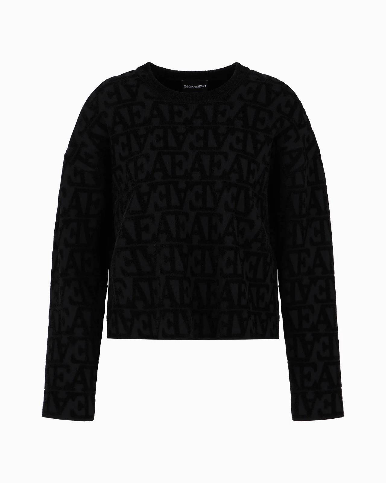 Viscose jumper with all-over flocked-effect jacquard EA logo