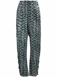 zigzag-embroidered trousers grey / green silk blend zigzag embroidery front button fastening two side slit pockets pleat detailing Imported Composition Viscose 82%, Silk 18% SIZE & FIT Model measurements Height 5 ft 9 in(1.74 m) Bust/Chest 32.28 in(82 cm) Hips 35.82 in(91 cm) Waist 24.01 in(61 cm) FittingInformation This piece fits true to size. We recommend you get your regular size Designed to be fitted at the waist, loose over the leg Made with a mid-weight non-stretch fabric Washing instructions Dry Clean Only