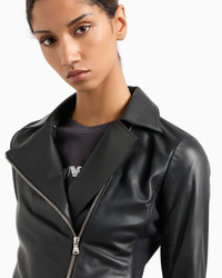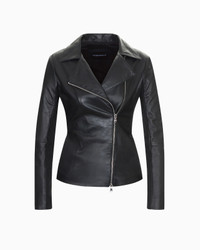 Jacket made from luxury, semi-aniline, nappa lambskin with jersey inserts on the inside of the sleeves and an off-centre closure. The leather biker jacket is reinvented to reflect the latest trends, acquiring all the charm of Emporio Armani. The piece belongs to the Essentials selection, the Emporio Armani capsule collection that makes a statement of enduring style: both elegant and practical, it works for numerous combinations on a wide array of occasions. The colour palette includes the brand’s characteristic neutral shades, combined with a minimalist design to create a series of key pieces for the female wardrobe. Product Code: 0NB10P02P151999 Details Composition 100% Lambskin Nappa leather Jersey inserts Diagonal off-centre zip closure Long sleeves Stretch serge lining Fitting The model is 178 cm tall and is wearing size 40/S (Italian Size)