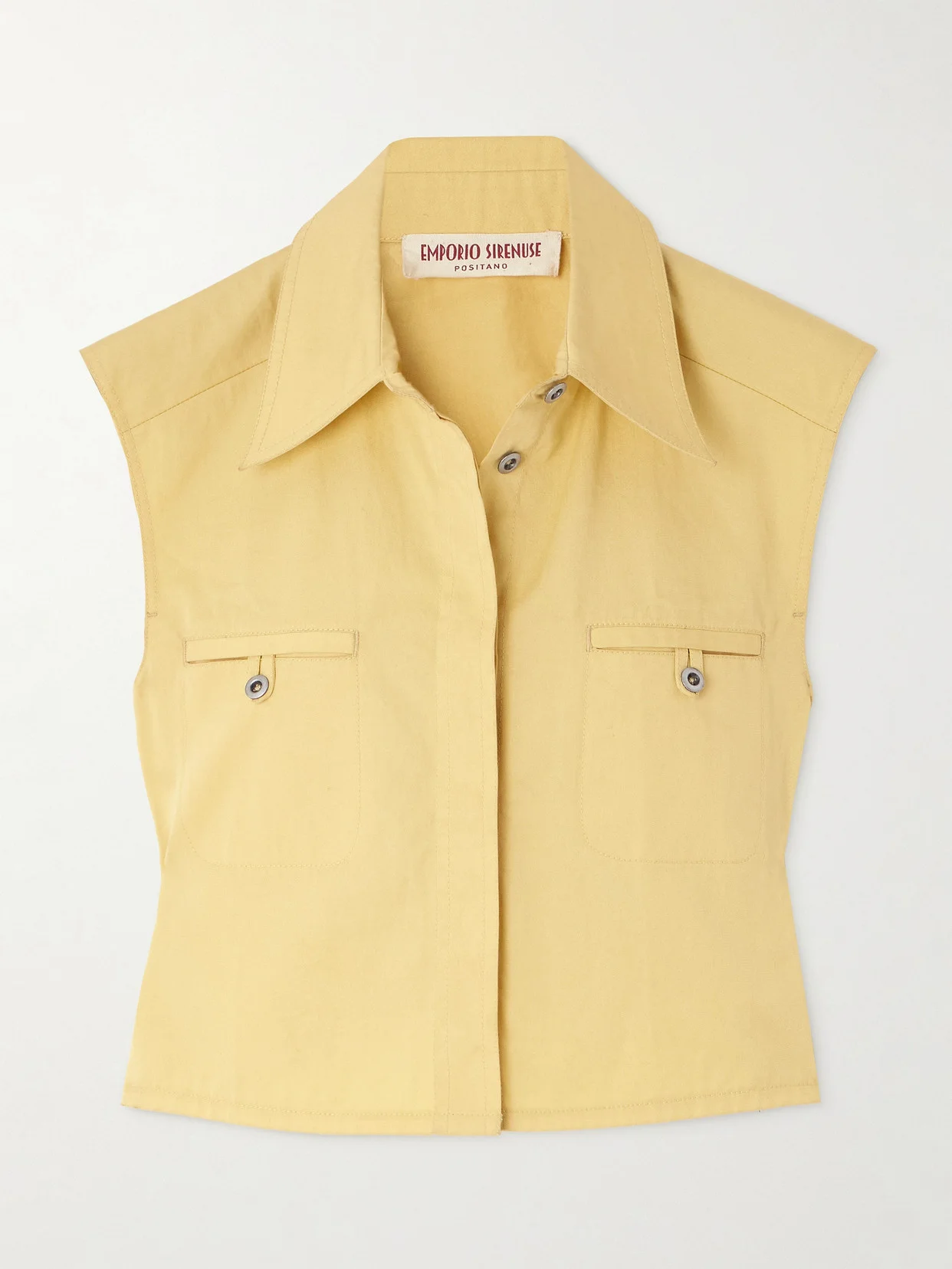 Named after the hotel on the Amalfi Coast, Emporio Sirenuse's collections embody the elegance of the Italian Riviera. This 'Caterina' top is inspired by '50s styles. It's made from cotton-twill in a cropped shape with a neat collar and partially concealed placket.