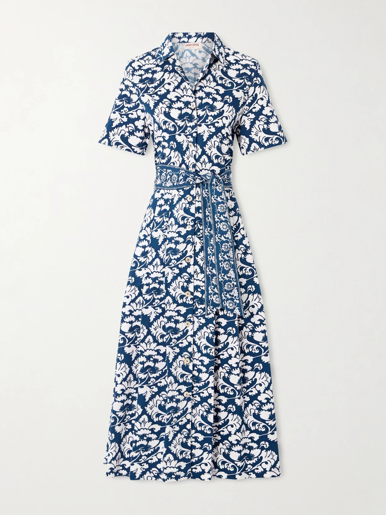 Claudia Belted Pleated Floral-print Cotton Midi Dress